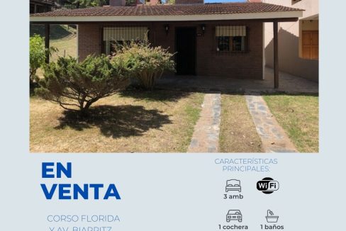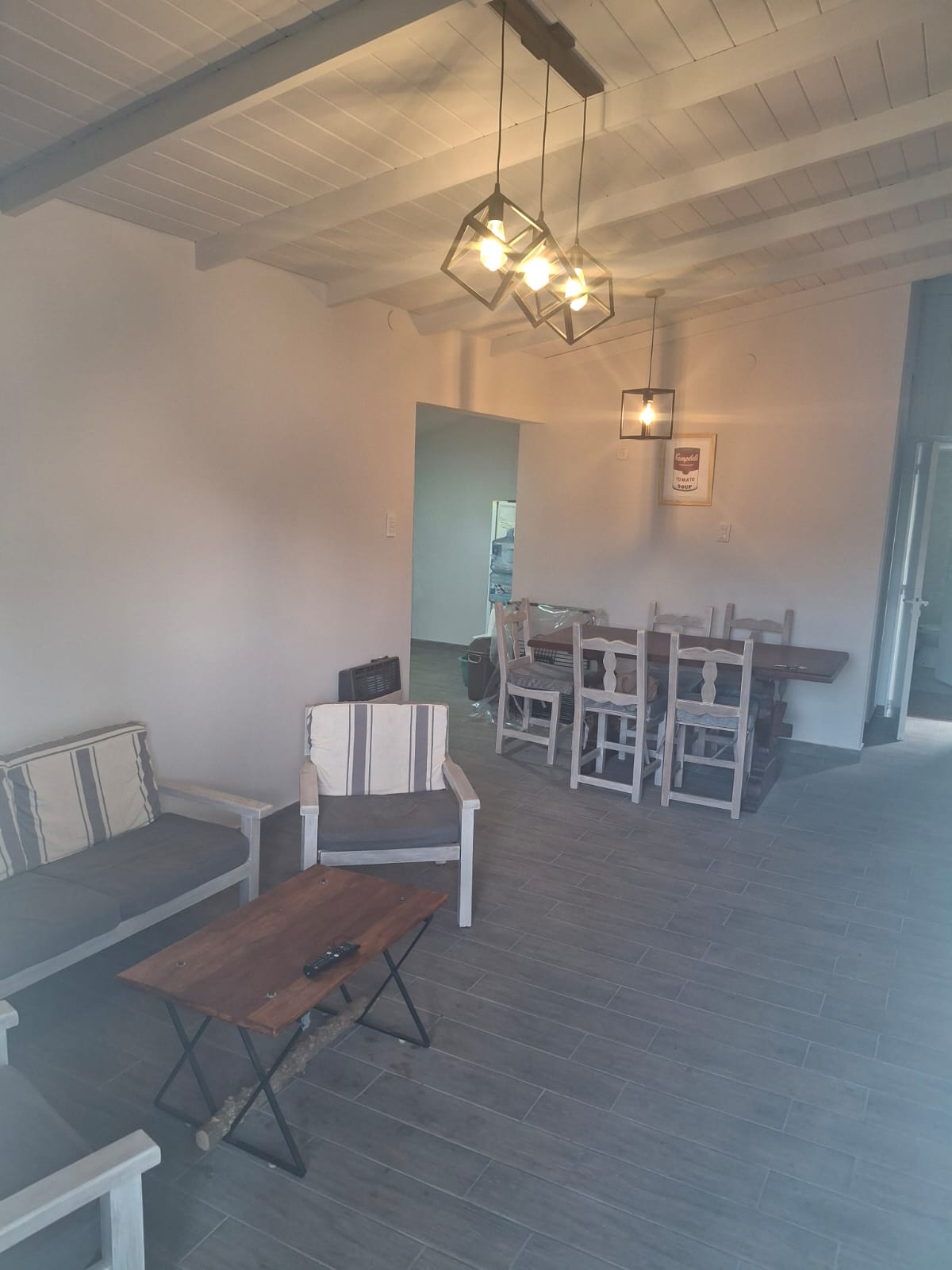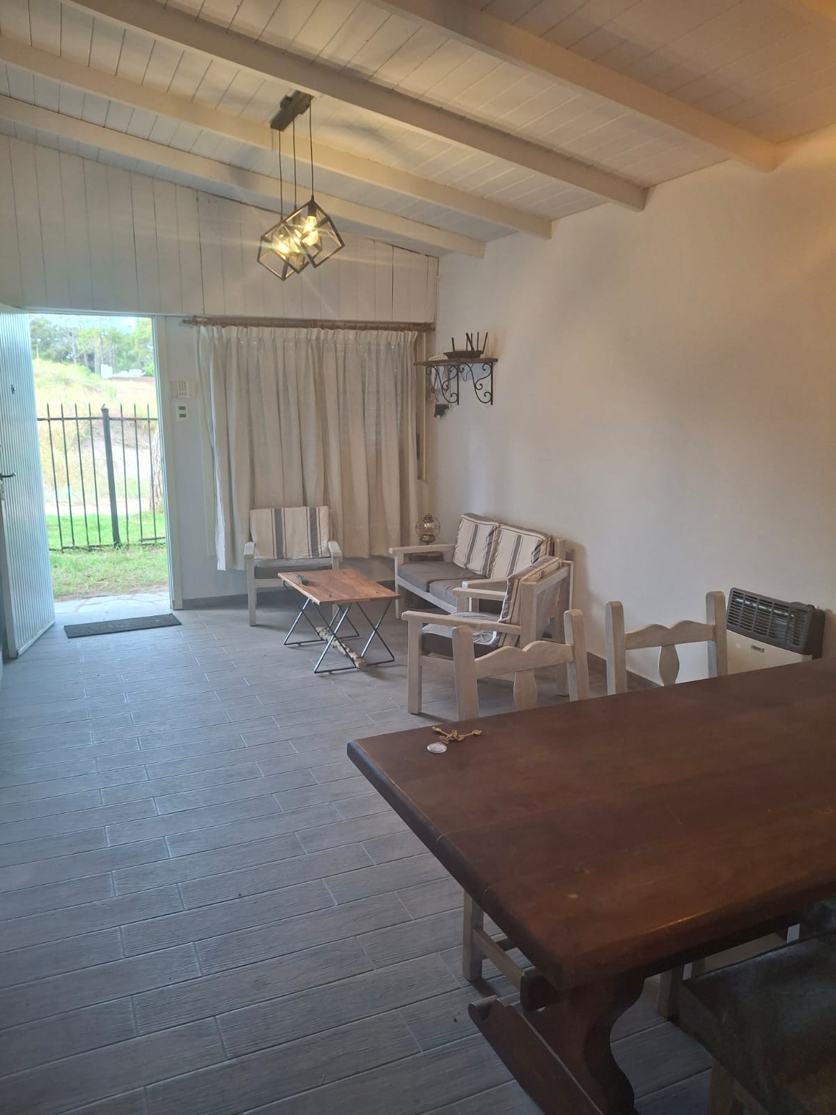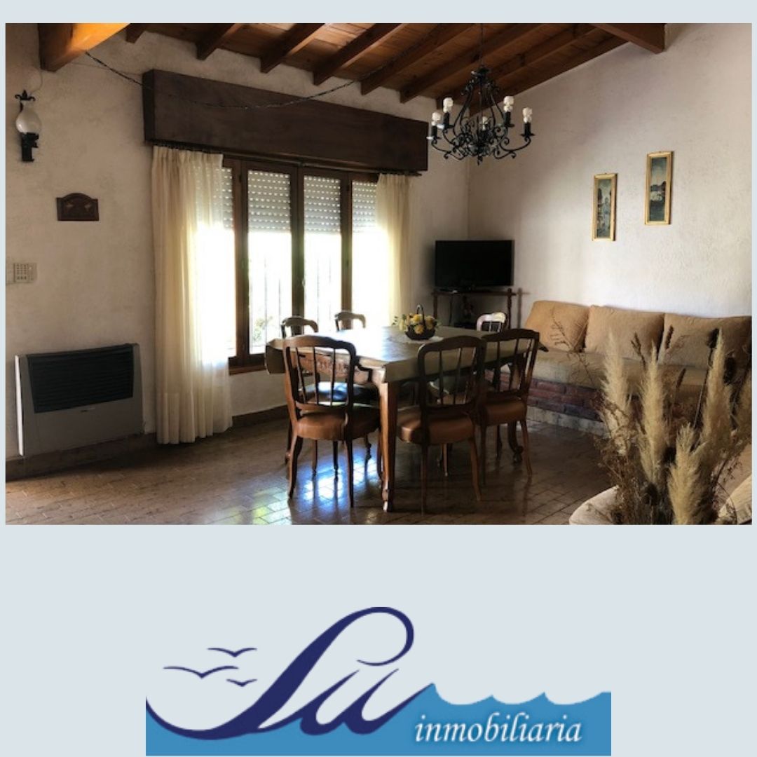 Chalet de 3 ambientes, ubicado a una cuadra de la playa, con dos dormitorios uno matrimonial y en el otro dos superpuestas. Un baño. Jardin y parrilla capacidad maxima